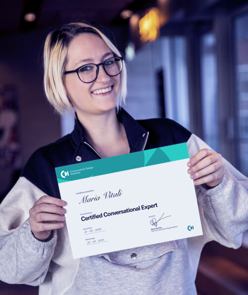 CDI's in-depth knowledge about all that is Conversation Design and CAI is simply astonishing. Acquiring a CDI certificate will prepare you for all there is to know to (jump)start your career in Conversation Design.
